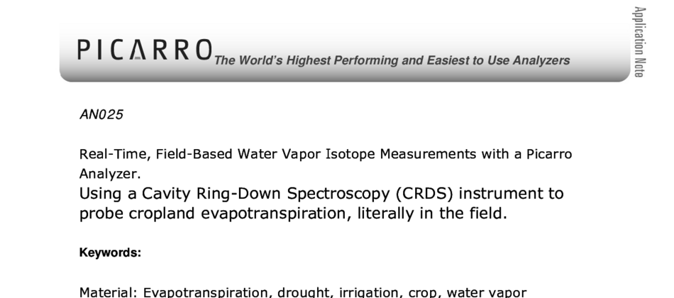 AN025 - Real-Time, Field-Based Water Vapor Isotope Measurements with a Picarro Analyzer.