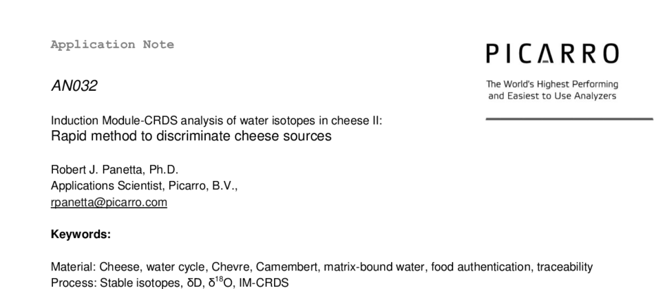 AN032: Induction Module - CRDS analysis of water isotopes in cheese II: