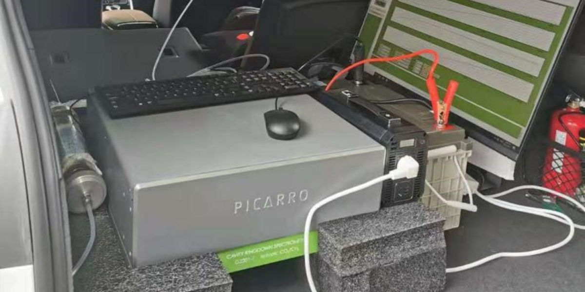 After comparison with other analyzers, Dr. Zhang planned to use a Picarro G2201-i as the core observation platform. The instrument arrived in the summer of 2021 and was installed in a modified Buick GL8 vehicle recently. It's important to note that, 14C is usually used to determine the type of CO2 emitted, whether it comes from fossil fuel combustion or natural emissions; however, 14C is measured by Accelerator Mass Spectrometry (AMS), which is very expensive. Instead, the G2201-i measures δ13C to identify different stable isotope performances through navigation measurements, and through big data comparison, trace different types of emissions and even determine the source of emissions.