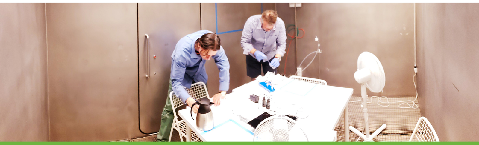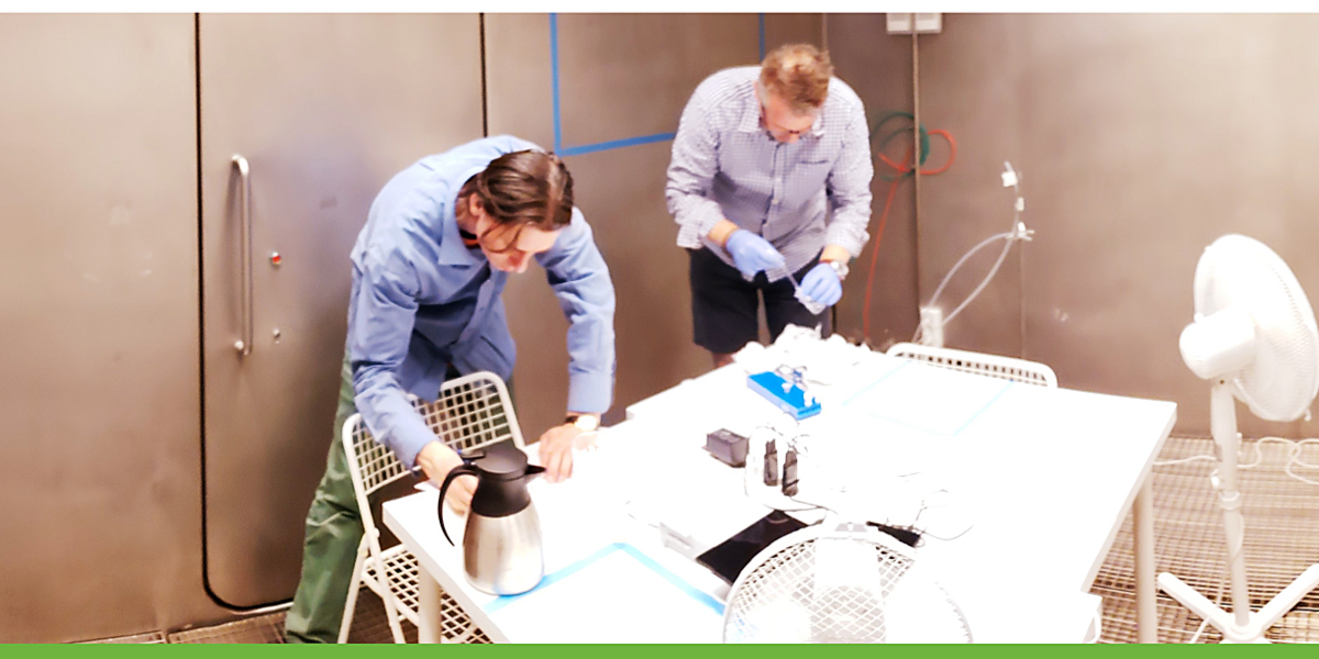 iCHEAR (Indoor Chemical Human Emissions and Reactivity) is a Sloan-funded collaborative research project designed to examine the role of humans and human emissions on indoor air chemistry. It is led by research group leader Jonathan Williams (Max Planck Institute for Chemistry) in collaboration with Pawel Wargocki and Gabriel Bekö (Department of Civil Engineering, Technical University of Denmark-DTU) at the International Centre for Indoor Environment and Energy (ICIEE). iCHEAR investigates exhaled, dermally emitted and overall human emissions in carefully controlled stainless steel twin climate chambers (see photo above) under different conditions of clothing, temperature, relative humidity and ozone and their impact on OH reactivity.
