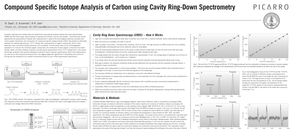 Describes recent developments in GC-C-CRDS-based instrumentation applied to isotope measurements in large molecules. Source AGU 2009 Fall Meeting Download