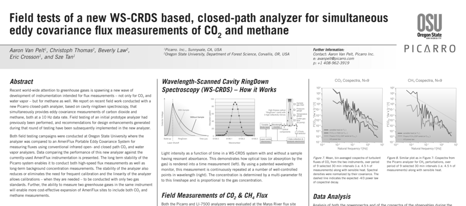 Describes field testing of Picarro's fast analyzer for eddy covariance flux measurements of greenhouse gases. Source AmeriFlux 2009 Download