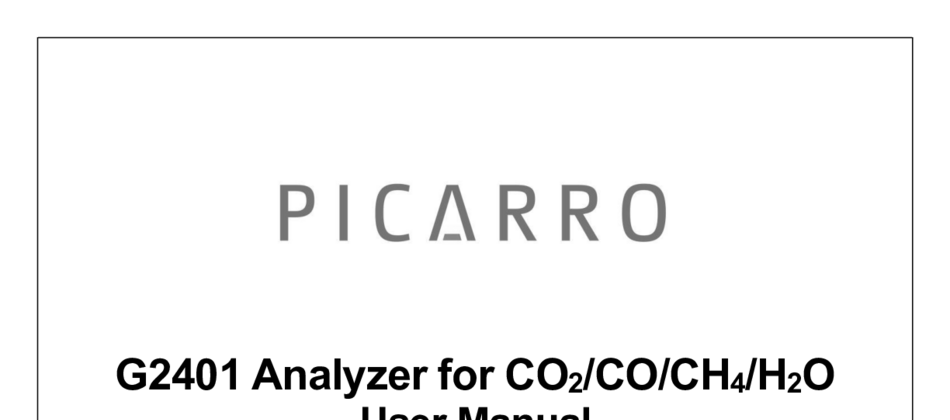 Simultaneous, precise measurement of CO2, CH4, and H2O for lab, field or mobile applications. This manual provides safety, contents, overview, installation, operation, GUI functions, file management, calibration, troubleshooting, maintenance, remote data access, data file viewer, and external valve sequencer information.