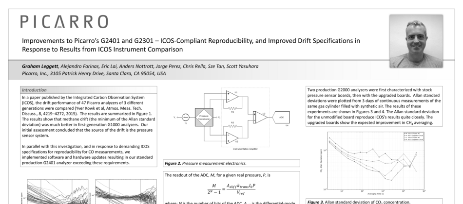 Our initial assessment concluded that the source of the drift is the pressure sensor system.In parallel with this investigation, and in response to demanding ICOS specifications for reproducibility for CO measurements, we implemented software and hardware updates resulting in our standard production G2401 analyzer exceeding these requirements.