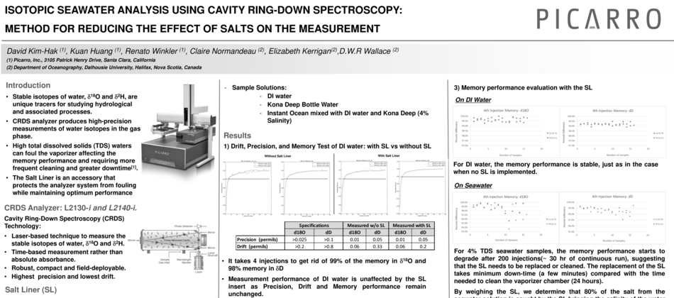 High-salinity waters such as Seawater poses an operational and maintenance challenge to the measurements of water stable isotopes via Cavity Ring-Down Spectroscopy. As liquid samples are evaporated in the vaporizer peripheral before being sent to the CRDS analyzer, salt precipitates accumulate in the vaporizer chamber. As a result, the sample-to-sample memory performance degrades over time and frequent cleaning is required to maintain the peripheral performance and integrity.