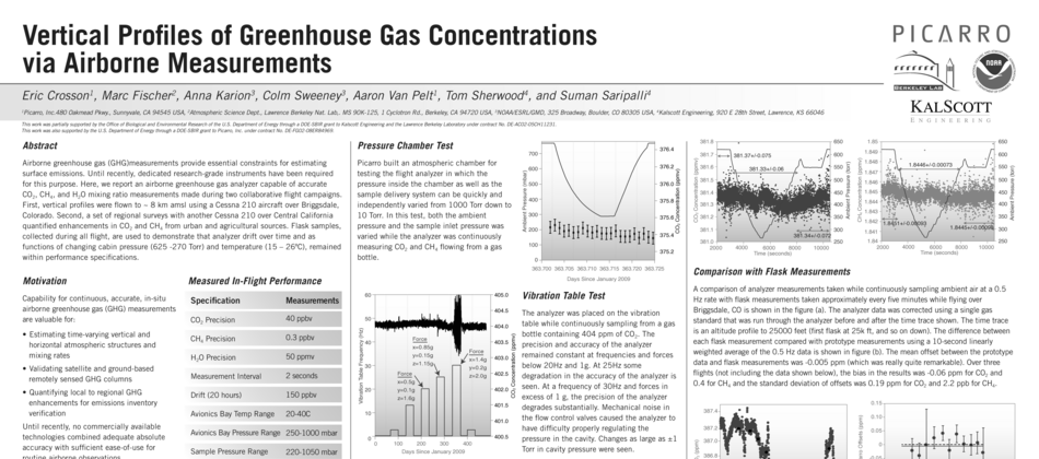 Describes results of laboratory testing and field campaigns with Picarro's flight-ready greenhouse gas analyzer.