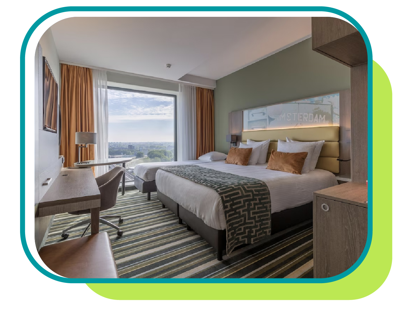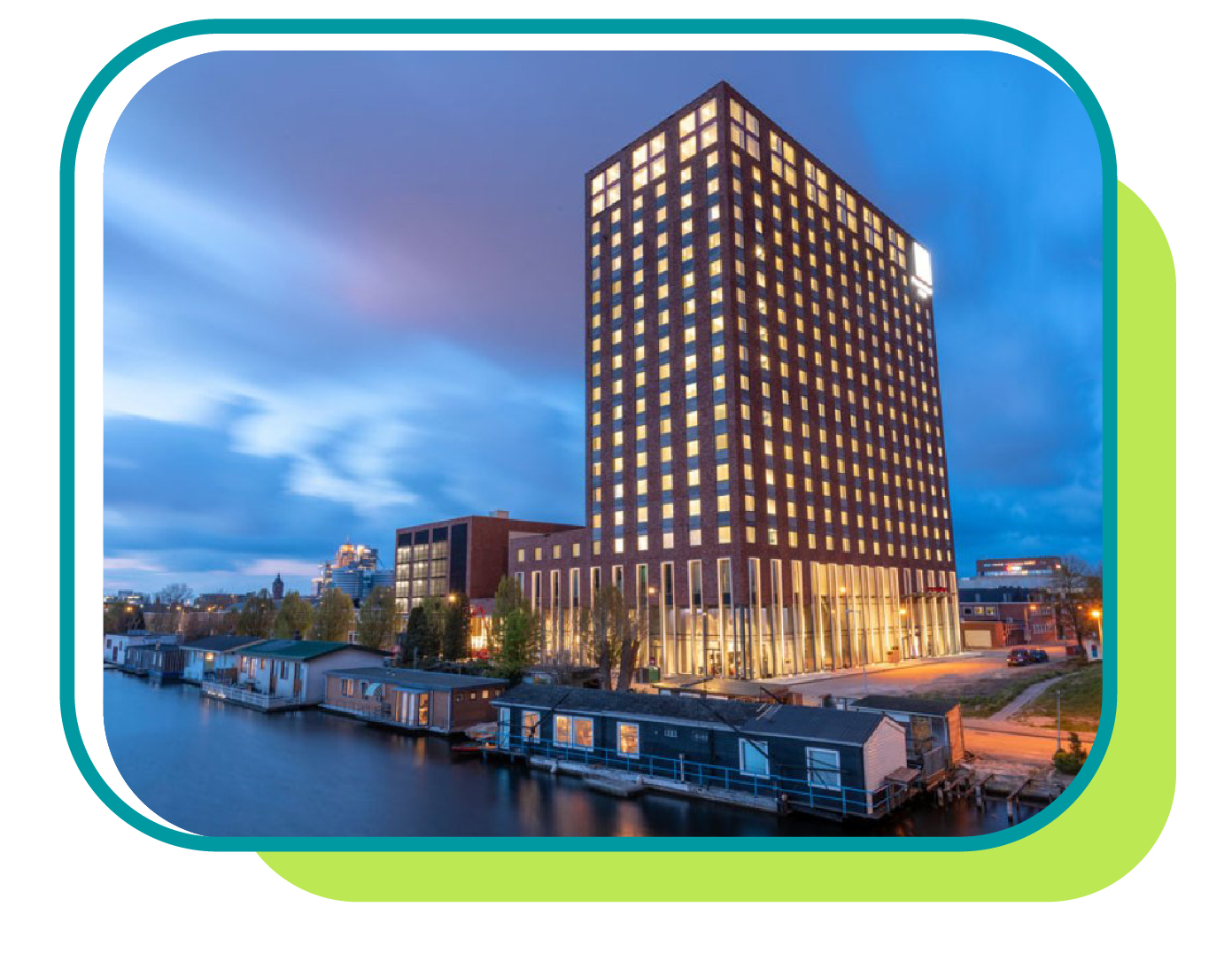 This event is hosted at the Leonardo Royal Hotel Amsterdam. Attendees will enjoy a discounted rate with easy access to all event activities. Strategically located near the metro station "Overamstel," the 4-star superior hotel offers unparalleled convenience with swift access to Amsterdam Central Station, Schiphol Airport, and RAI Exhibition and Convention Centre.