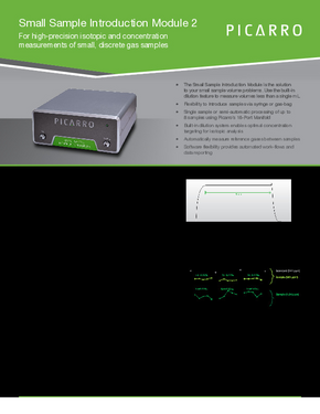 The Picarro Small Sample Introduction Module (SSIM) is designed for processing small volumes of gas samples through a Picarro analyzer. Through a minor modification, we can now expand the functionality of the SSIM so that more accurate concentration measurements can be performed on both isotopic and concentration analyzers.