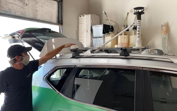Picarro's Director of Sales & Client Engagement in LATAM, Malvin Delgado, giving an overview of Picarro's vehicle hardware.